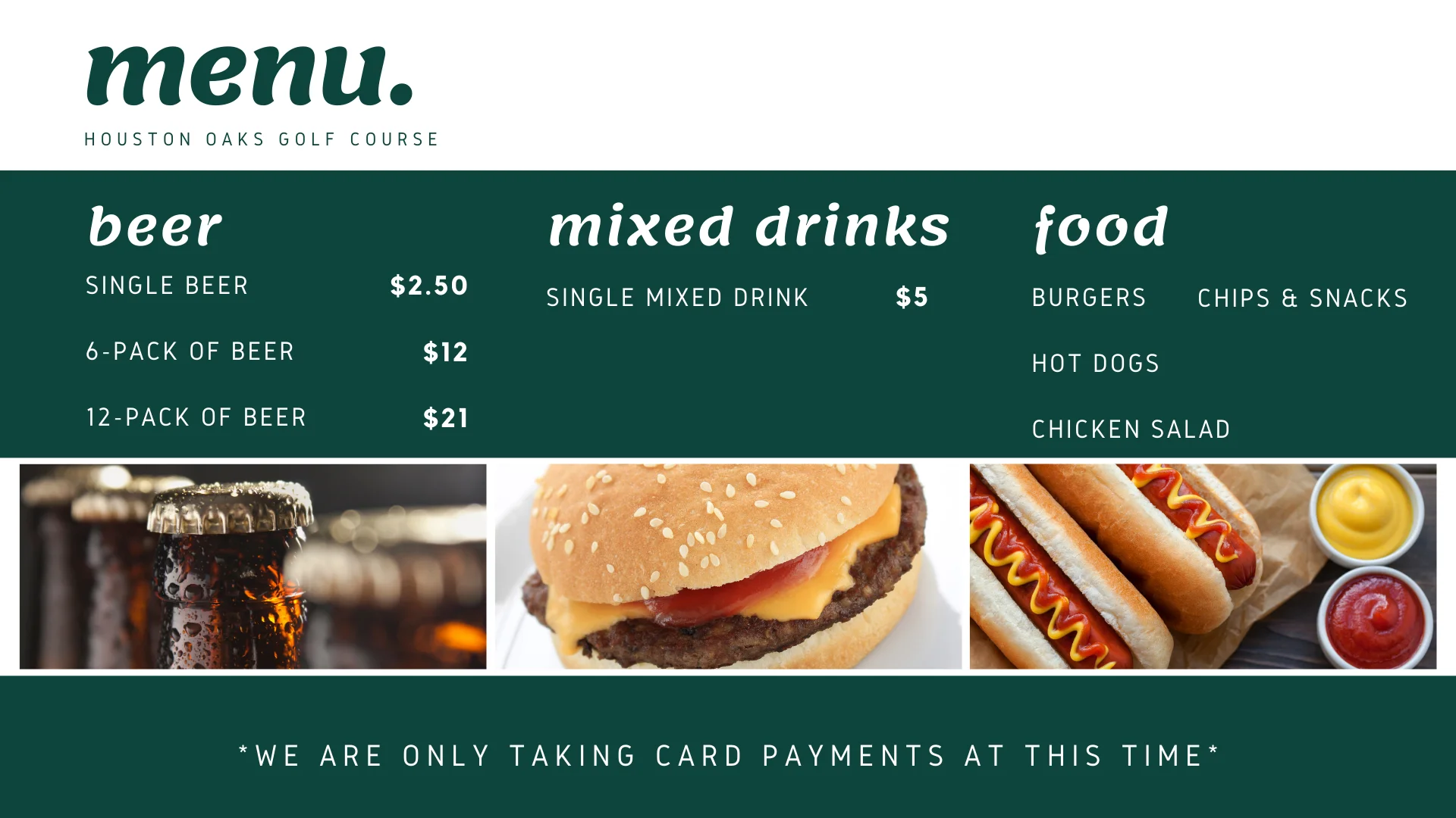 [av_button label=’BOOK A TEE TIME ONLINE’ link=’manually,https://houstonoaksgc.teesnap.net/’ link_target=” size=’large’ position=’center’ label_display=” icon_select=’no’ icon=’ue800′ font=’entypo-fontello’ color=’theme-color’ custom_bg=’#444444′ custom_font=’#ffffff’ av_uid=” custom_class=” admin_preview_bg=”]Wondering about food & beverage at the course?